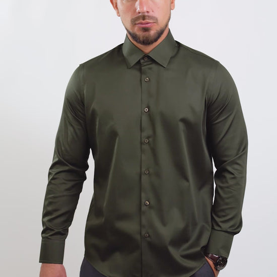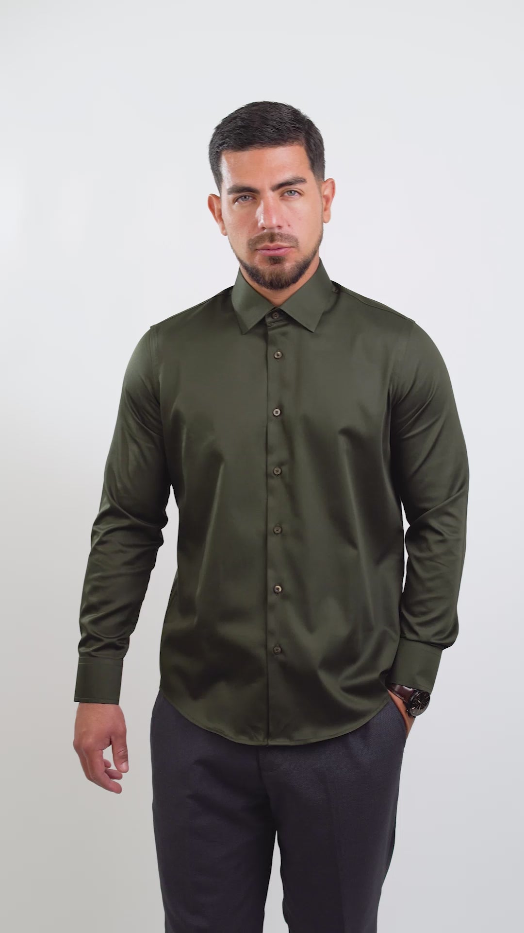 Preventa - Camisa Verde Militar Algodón Stretch Slim Fit