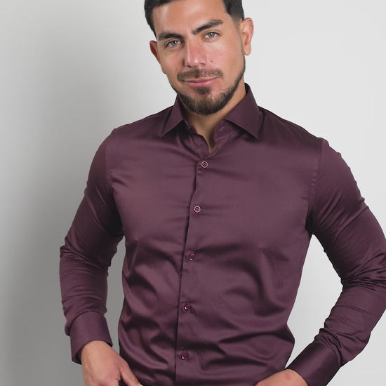 Preventa - Camisa Vino Algodón Stretch Slim Fit